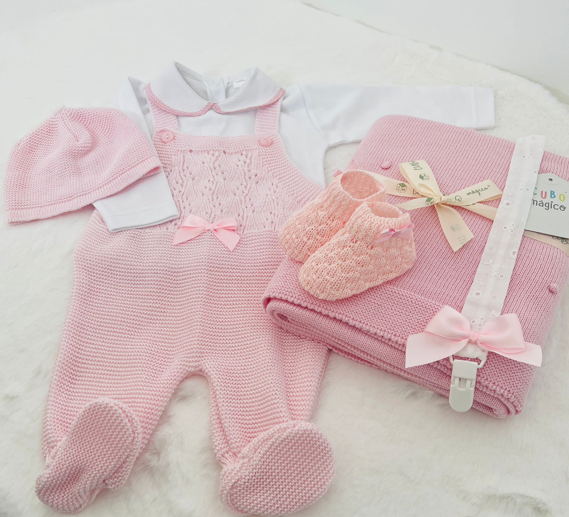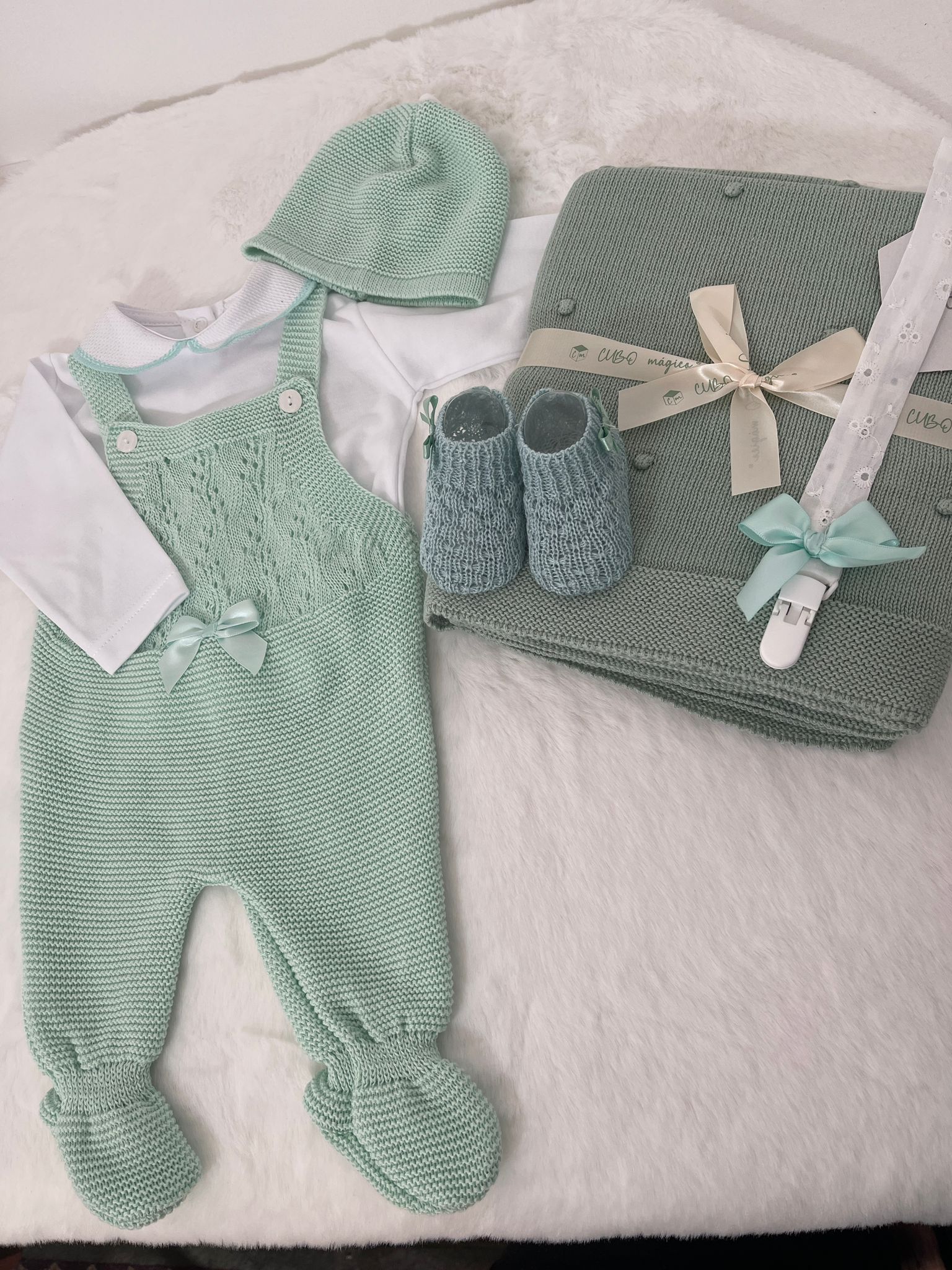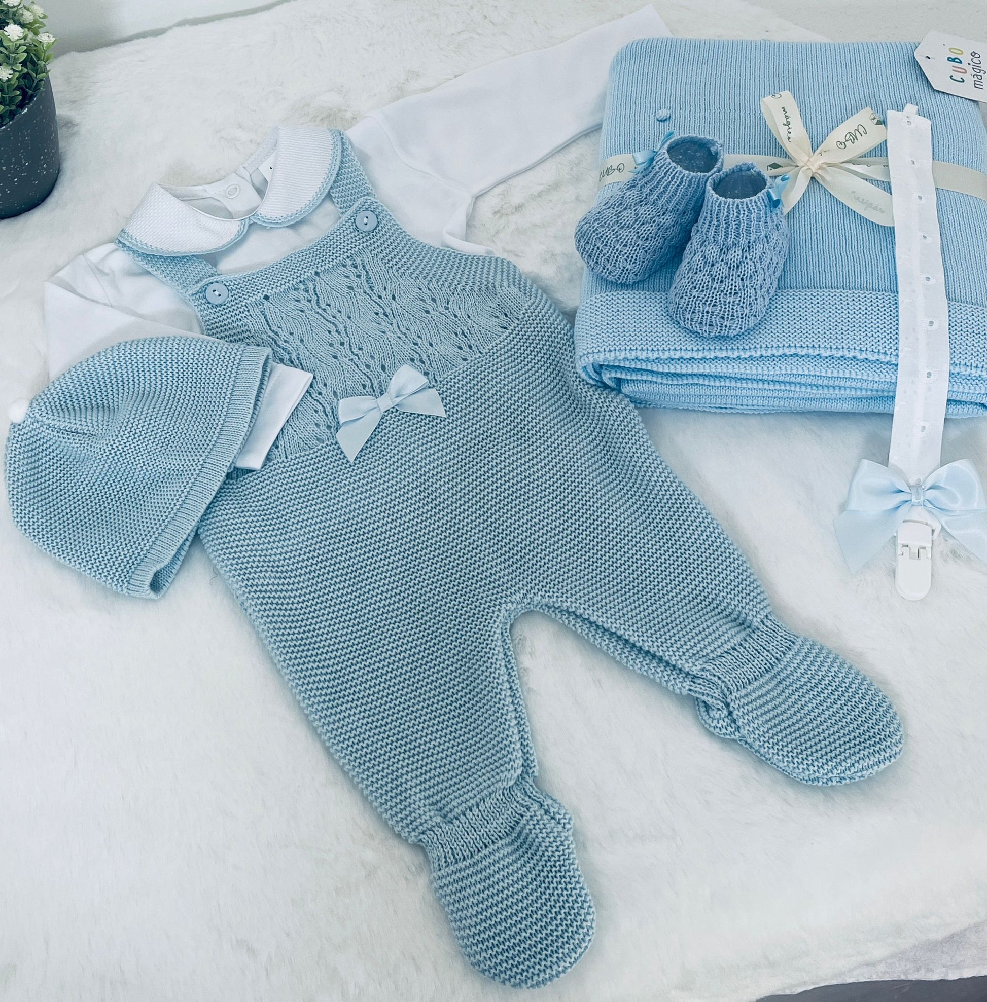 Jardineira + Camisola de Manga Comprida + Gorro+ sapatinho+ Manta+ prende-chupeta